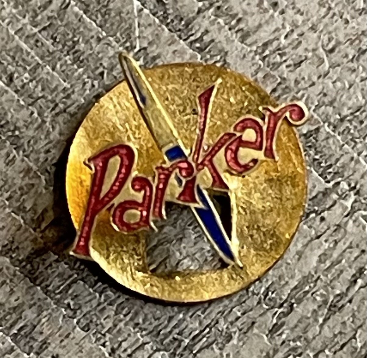 JV815. PARKER “51” Lapel Salesman Enamel Pin. Perfect paint with no chips. Meant to be used on a buttonhole/lapel. Neat piece of ephemera. $100