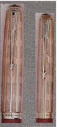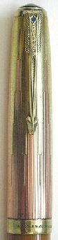Lustroloy (stainless steel) caps with gold filled clips and gold filled bands. Also known as a "wedding band cap". Brushed finish on most caps, although some examples are found with a rhodium plating. Most examples have aluminum jewels.