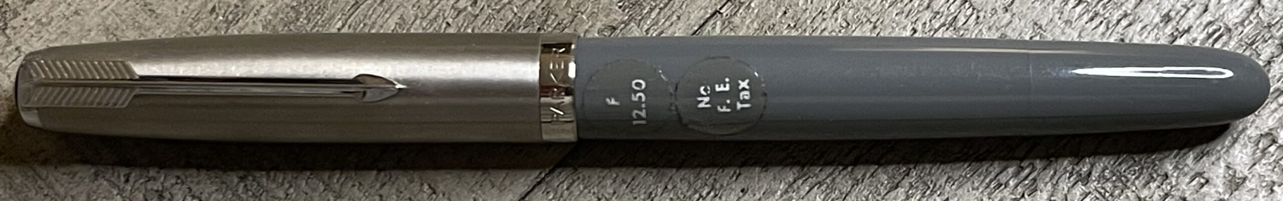 JV902. PARKER “51” Vacumatic in Dove Gray with Lustraloy cap. New Old stock pen with stickers, never filled. Perfect, crisp pen. Date code of 1947. Fine 14k nib. Cannot be returned if filled or dipped, $225