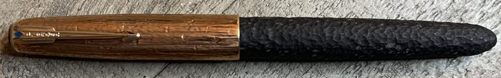 JV939. PARKER “51” Aerometric in Textured Black barrel and Copper Bark cap by Ariel Kullock. Great color and beautiful cap. Choice of fine or medium 14k nib. Completely restored and working, $550