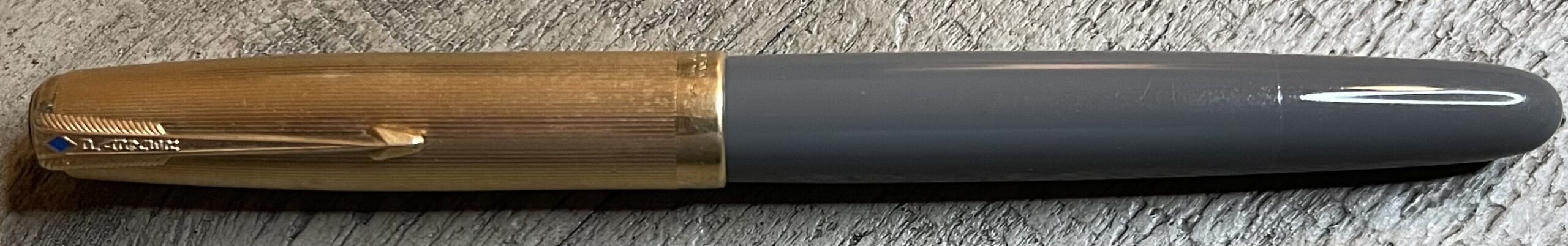 JC674. PARKER “51” Aerometric “special” in Navy Gray with Polished Steel cap. New old stock pen, never used or filled. Some minor drawer wear. Fine octanium nib. Cannot be returned if filled or dipped, $150SOLD